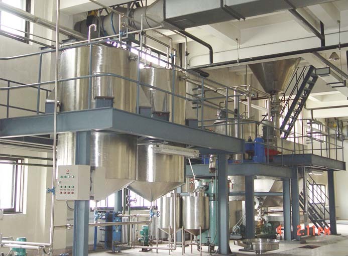 提取(流程图见图2):投料完毕后,关紧投料门,打开阀门8加溶剂开始加热,根据生产的品捉或工艺不同提取罐的提取操作过程有以下几点: