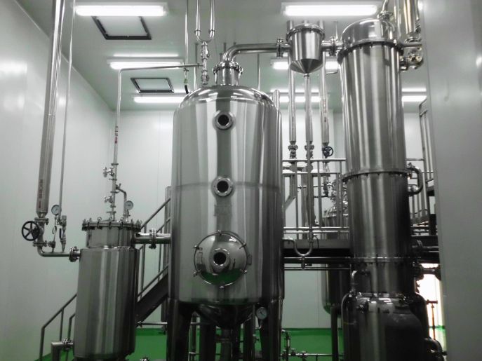 真空浓缩器采用的刮板桨叶与罐筒配合可选用球形或锥形,罐体采用夹套结构加热,冷凝器为列管式,冷却器为蛇管式,设备外壳哑光,生产过程符合药品生产GMP质量标准。搅拌蒸发,浓缩效果好,适用于高粘度状态物料的传热蒸发浓缩。